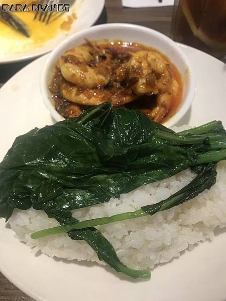 主餐我是點了限量的咖哩鳳尾蝦飯,朋友是點干炒河粉,